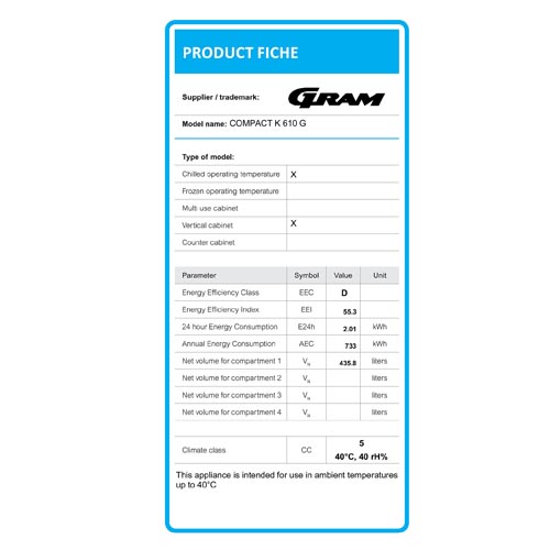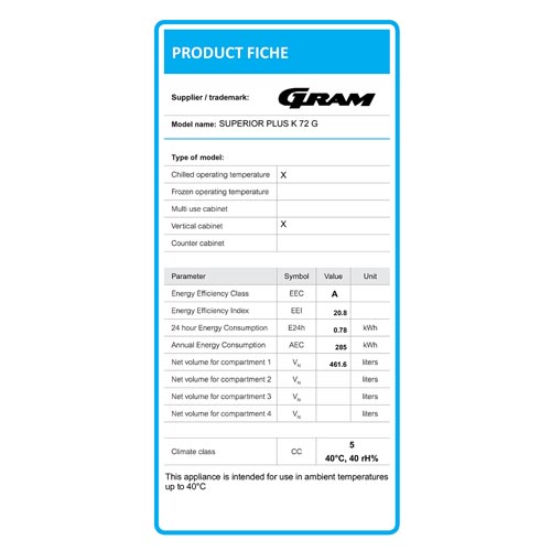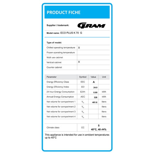 | 700x905x2125 | 230V/50Hz/248W | 610/477 | +2/+12°C | 1 | 85.3191 | € 3.391,50 | Bestel |