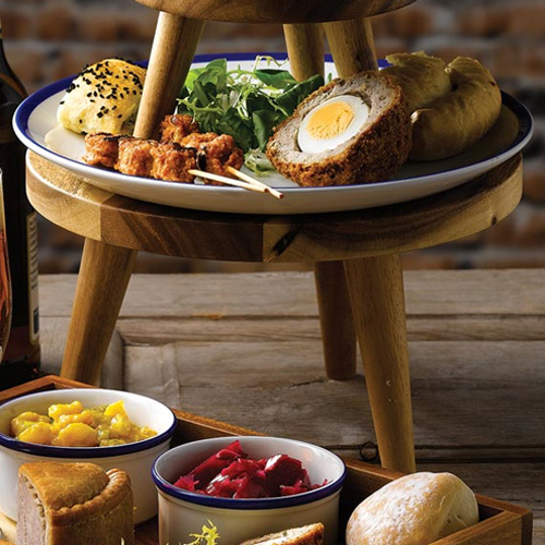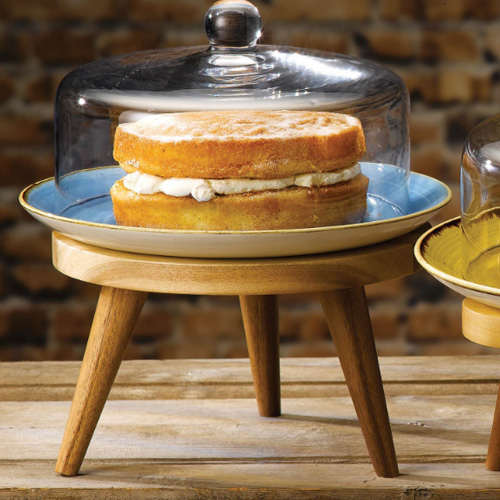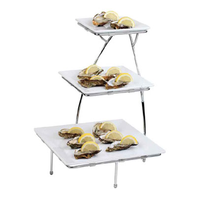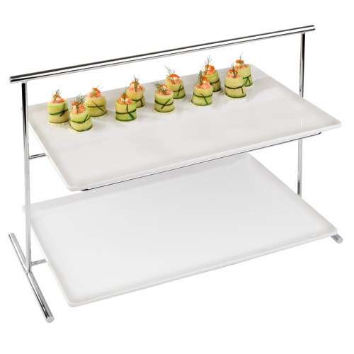 Om tijdens een high tea de hapjes en zoetigheden te presenteren heeft u ruimte nodig. Een etagère van twee of drie etages biedt genoeg mogelijkheden om dit te kunnen doen. Voor de grotere lekkernijen kunt u kiezen uit diverse gebakstandaards, taartplateaus en taartstandaards gemaakt van roestvrijstaal, kunststof en/of hout. Te bestellen met bijbehorende cloche of stolp.