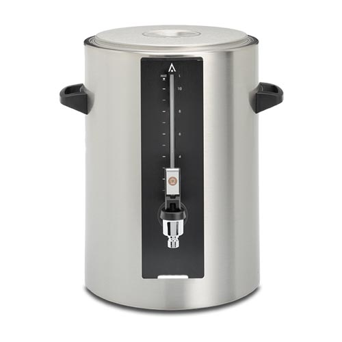 Équipés d'un élément chauffant avec thermostat Klixon dégagé du fond. Cela donne un effet au bain-marie à air chaud qui maintient mieux la température de la °boisson (env. 85°C) et la conserve plus longtemps. Au choix : 4, 6, 8, 10, 12, 16, 20 ou 25 litres. Les conteneurs de 4 à 8 litres sont équipés d'une poignée étrier, les autres avec des poignées.