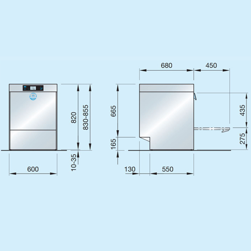 | M-iClean UL | 600 x 680 x 820 / 855 | 40 / 30 / 15 paniers par heure (720 assiettes, 1440 verres) (en théorie) | 3NPE 400V / 6,8kW (en option 230V) | 0,5 kW | 1 | 87.1252 | € 7.644,00 | Commander |