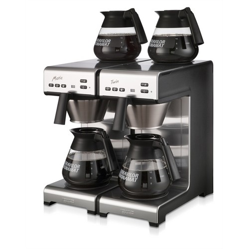 Grâce au raccordement à l'eau courante, la Matic est automatiquement remplie d'eau. La qualité du café est garantie par un dosage d'eau précis. Bien entendu, il est aussi possible de préparer par exemple la moitié d'un pichet de café. Via les commandes éclairées par des LED, vous pouvez choisir parmi quelques quantités préprogrammées. Des signaux indiquent quand le café est prêt et quand il faut détartrer l'appareil. Peu de temps est nécessaire pour l'opération et l'entretien, et il vous reste plus de temps pour d'autres activités ! Le Matic Twin dispose de deux systèmes de préparation avec des paniers à filtre en acier inoxydables et offre de la place à quatre pichets en verre.