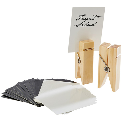 | Porte-cartes modèle « à pince » couleur blanc jeu de 2 pièces bois | 4x2,5x10 | 1 | 38.2432 | € 12,00 | Commander | |||