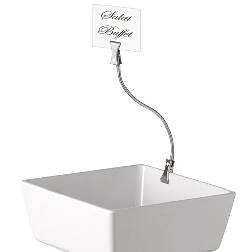 Différents modèles de porte-cartes/pince-cartes et porte-étiquettes. Ces articles vous aident à afficher de façon facile, correcte et flexible les textes des cartons de signature. |