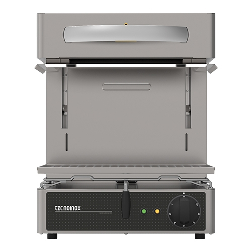 Les salamandres Tecnoinox sont équipées d'un élément de chauffage électrique qui assure un chauffage égal de toute la surface du grill. Les plats sont placés sur une grille dans la salamandre. L'élément est réglable en hauteur, le produit peut être approché de l'élément pour un dorage rapide ou éloigné de la source de radiation pour une cuisson lente.