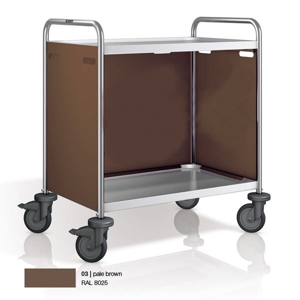 | Brun pâle - RAL8025 | 930 x 600 x 950 | 800 x 500 | 2 | 4 roues pivotantes - 2 avec frein | 1 | 72.3406c | € 602,00 | Commander |