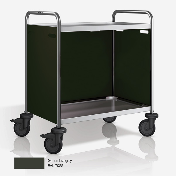 | Gris terre d'ombre - RAL7022 | 930 x 600 x 950 | 800 x 500 | 2 | 4 roues pivotantes - 2 avec frein | 1 | 72.3406e | € 602,00 | Commander |