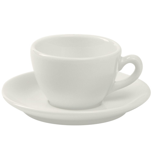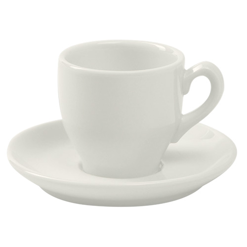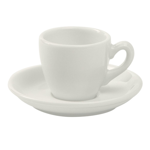 Une série de service italien non empilable de porcelaine d'hôtel Nova pour les types de café expresso, café ou cappuccino, en émail blanc ou ivoire. La porcelaine d'hôtel de Nova est produite de manière responsable en conformité avec le label NovaEco. Tous les éléments se mettent au four à micro-ondes et au lave-vaisselle.