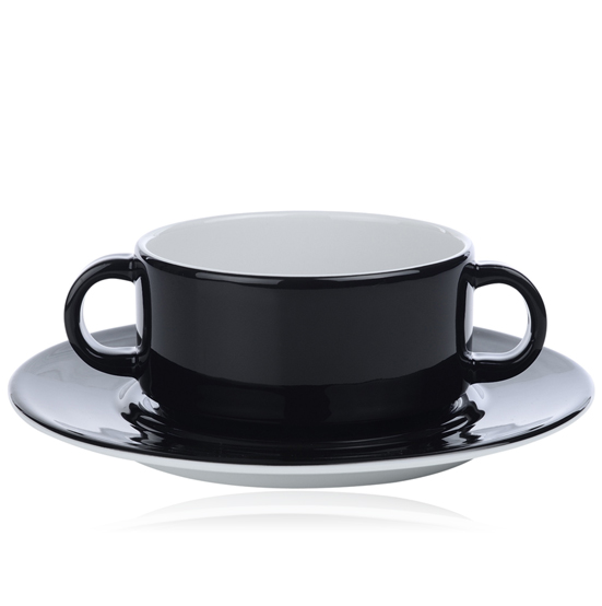 Porcelaine d'hôtel des séries Nordika, Ocean, Pisa, Roma et Cafélegante. Un émail blanc en combinaison avec la couleur noir. La porcelaine d'hôtel de Nova est produite de manière responsable en conformité avec le label NovaEco. Tous les éléments se mettent au four à micro-ondes et au lave-vaisselle. |