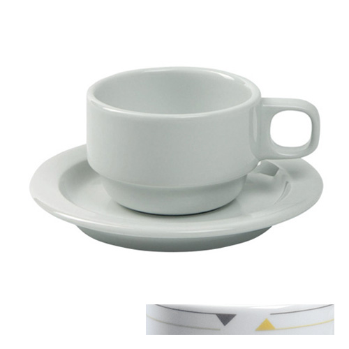 Porcelaine d'hôtel de Nova blanche avec émail transparent. Modèles basiques et porcelaine d'hôtel empilable avec décor Solar. La porcelaine d'hôtel de Nova est produite de manière responsable en conformité avec le label NovaEco. Tous les éléments se mettent au four à micro-ondes et au lave-vaisselle. |
