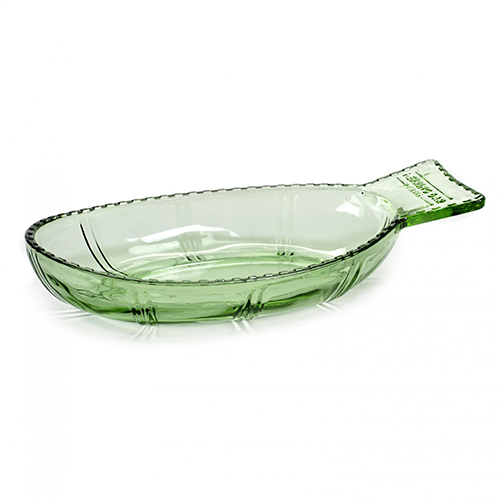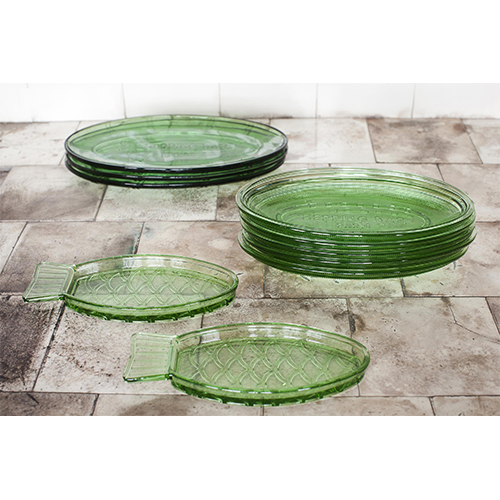 De Italiaanse designer Paola Navone presenteert de serviescollectie Fish & Fish. Hierbij liet ze zich inspireren door producten vervaardigd in de Verenigde Staten tijdens de Grote Depressie van de jaren 30. Toegankelijk, solide en weloverwogen vindt deze collectie haar weg naar alle mogelijke tafels. De schalen, bokalen en flessen zijn gemaakt van geperst glas en beschikbaar in Jadeite (groen), Milk Glass (wit) en Depression Glass (transparent). Deze toegankelijke en solide serviescollectie uit geperst glas sluit perfect aan bij aperitieven, degusteren en dineren in het ‘finger food’ concept
