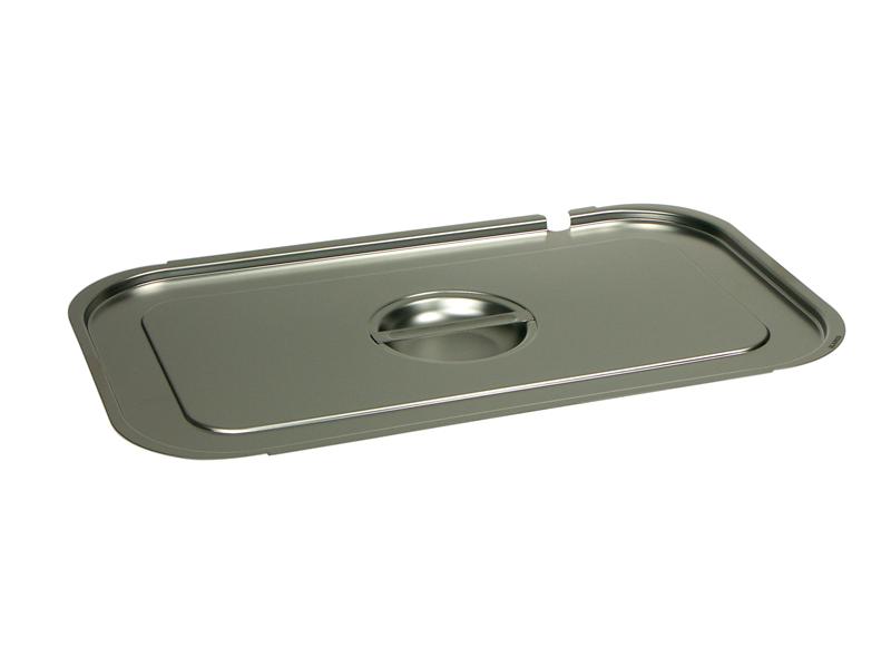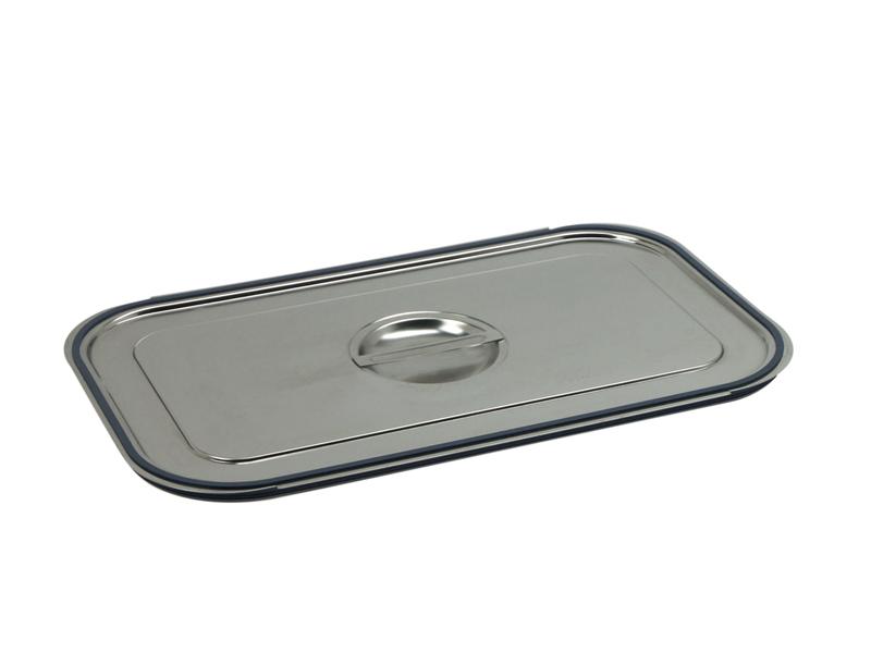 Deksels voor gastronormbakken met beugelgrepen (wegklapbare grepen); standaard, met lepeluitsparing of met siliconenafdichting. Uitvoering: roestvrijstaal 18/10. |