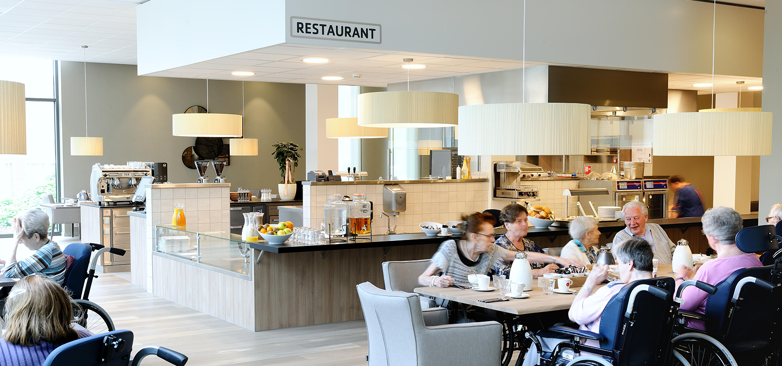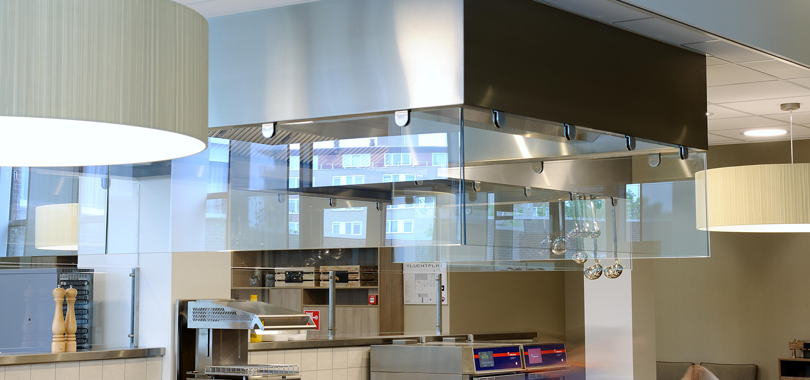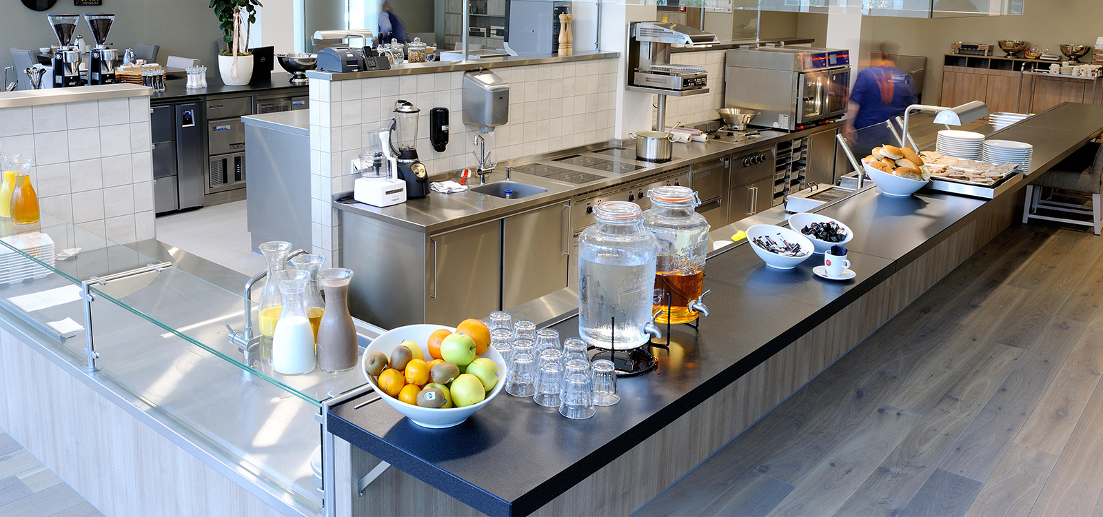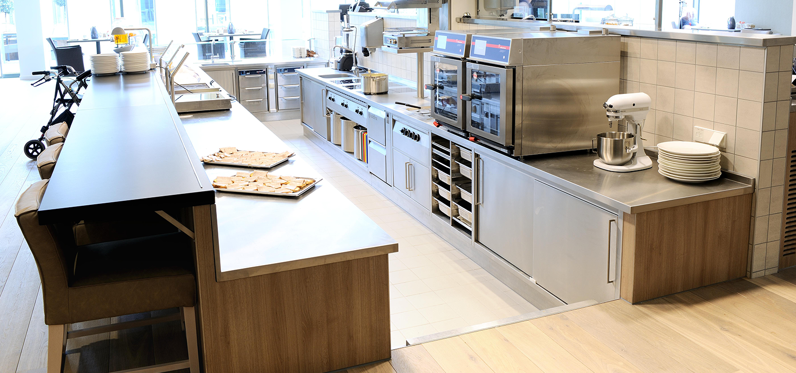 Grootkeuken, professionele keukenapparatuur, buffetuitgifte, spoelkeuken.