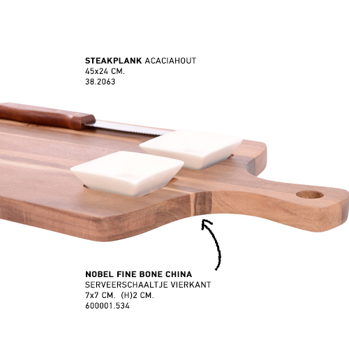 Presentatieconcept hout sfeer Serveer uw gerechten op sfeervolle wijze met (olijf-)houten steakborden, steakplanken en (tortilla-)schalen.