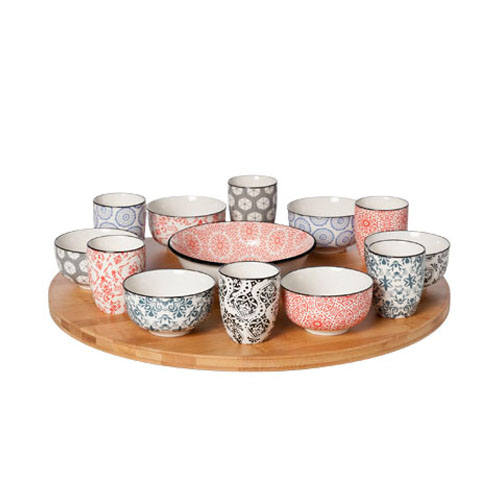 O.a. luxe acaciahouten en olijfboomhouten borden en serveerplanken en houten saladekommen en houten saladeschalen.